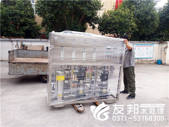 即將裝車發貨的是一套0.5噸雙級純凈水設備發往西安,歷經5個工作日,友邦工作人員全力以赴為客戶服務,保證客戶利益最大化。 接下來我們一起了解下小型反滲透設備的特點: